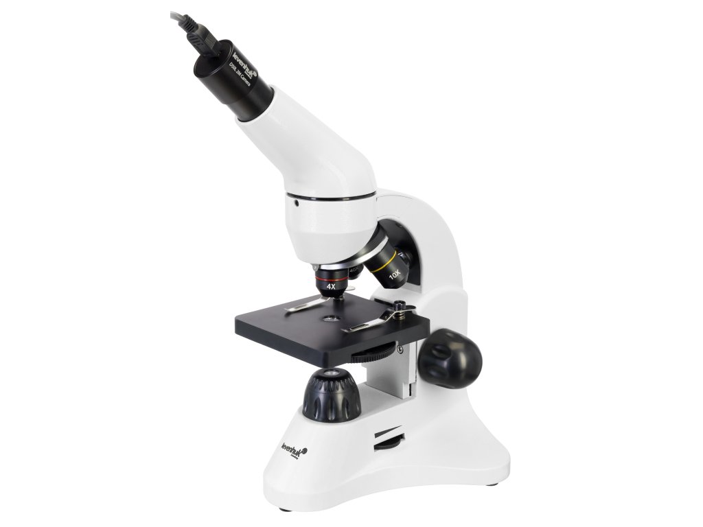 Mikroskop Levenhuk Rainbow D50L PLUS 2M je kompatibilní s digitálními fotoaparáty Levenhuk (kupují se samostatně). Fotoaparáty Levenhuk se instalují místo okuláru na jeho tubus.