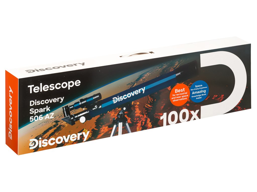 Jednou z výhod hvězdářského dalekohledu Levenhuk Discovery Spark 506 AZ je kompletní sada příslušenství. Kromě hvězdářského dalekohledu jsou v barevné dárkové krabici dva okuláry s různými ohniskovými vzdálenostmi, Barlowova čočka pro 3x zvětšení ohniskového vzdálenosti a další příslušenství. Ilustrovaná publikace „Vesmír. Neprázdná prázdnota“ poskytne začínajícím vesmírným badatelům odpovědi na mnoho otázek a nabídne zajímavá fakta o nebeských tělesech.
