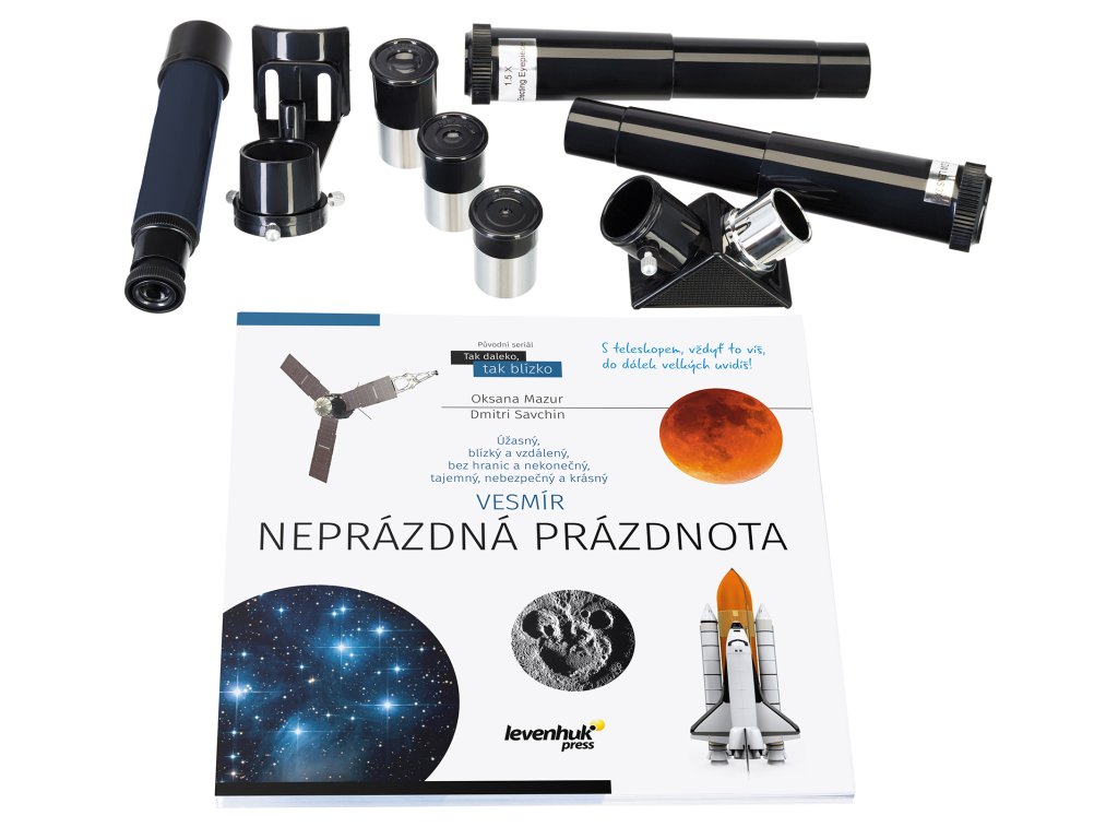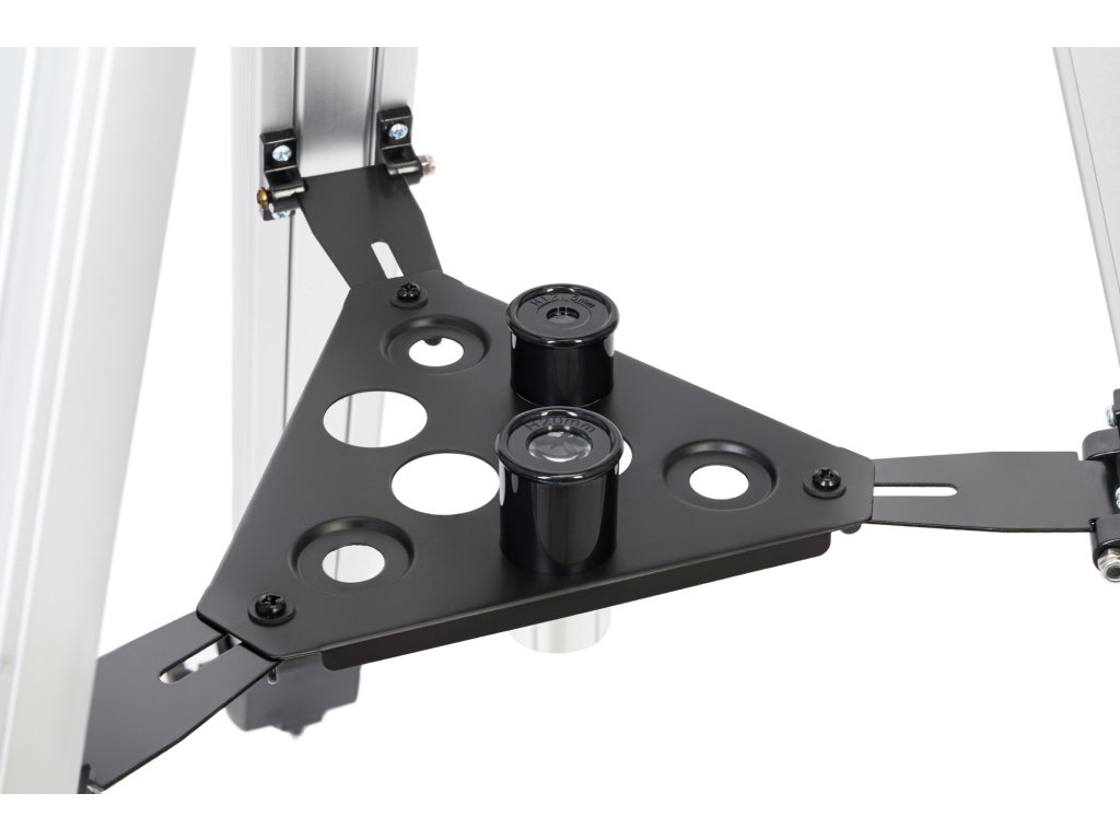 Během pozorování je příslušenství uloženo na přihrádce uprostřed stativu ve speciálních prostorách oddělených přepážkami. Stativ je vyroben z hliníku a stabilně stojí na libovolném povrchu. Mezi veškerým tímto příslušenstvím najdete ještě jednu užitečnou věc v barevné dárkové krabici: vzdělávací publikaci „Vesmír. Neprázdná prázdnota“. Jedná se o barevně ilustrovanou encyklopedii, která srozumitelnou formou představuje zajímavé skutečnosti o astronomických objektech.