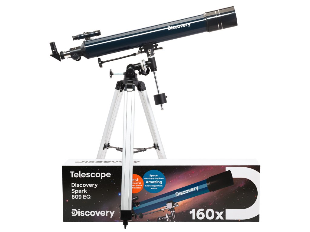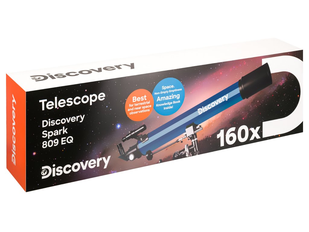 Hvězdářský dalekohled Levenhuk Discovery Spark 809 EQ se vzdělávací publikací ocení jak začátečníci, tak zkušenější uživatelé. Jedná se o refraktor s dlouhou ohniskovou vzdáleností a achromatickou optikou, který vám umožní detailně studovat Měsíc, prohlížet si planety a pozorovat další objekty hlubokého vesmíru. Tento hvězdářský dalekohled nemusíte nechávat nevyužitý ani během dne: může sloužit jako pozorovací dalekohled s velkým zvětšením pro pozorování pozemských objektů.