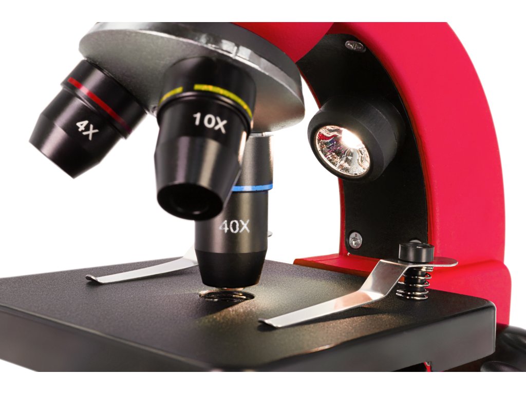 Optický systém obsahuje achromatické objektivy a širokoúhlý okulár. Všechny čočky jsou vyrobeny z optického skla, a proto poskytují ostrý a kontrastní obraz. Mikroskop umožňuje pozorování malých objektů v celém rozsahu zvětšení. Objektiv s 40x zvětšením je vybaven ochranným pružinovým rámem. Monokulární hlavu lze naklonit o 30°, a tak i při delší práci s mikroskopem se nebudete cítit unaveni.