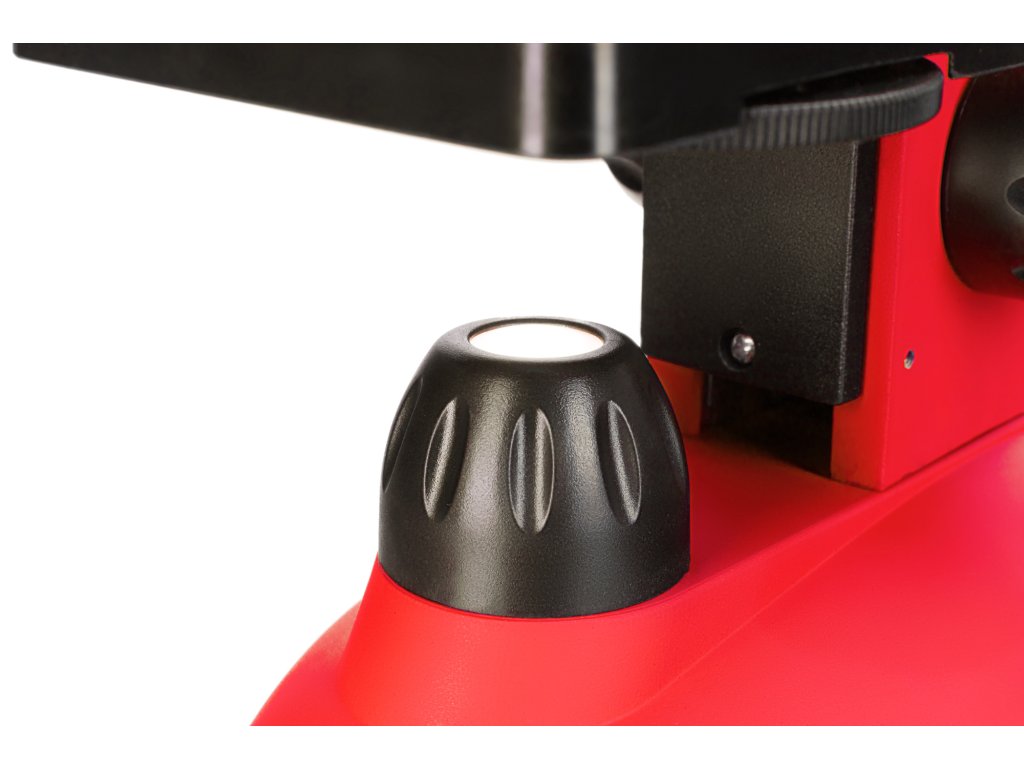 Stolek mikroskopu je vybaven držáky vzorků a kotoučovou clonou se šesti otvory pro regulaci světelného toku. Mikroskop využívá duální LED osvětlení, které je umístěno nad a pod stolkem. To umožňuje studium vzorků libovolné průsvitnosti. Osvětlení je napájeno standardními bateriemi, které jsou součástí sady.