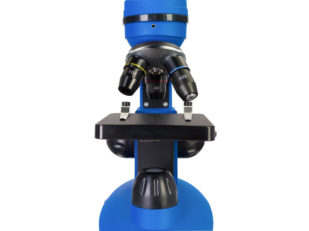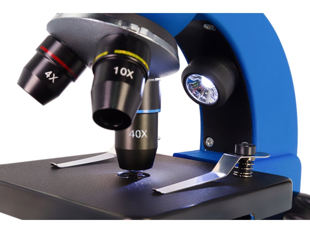 Optický systém obsahuje achromatické objektivy a širokoúhlý okulár. Všechny čočky jsou vyrobeny z optického skla, a proto poskytují ostrý a kontrastní obraz. Mikroskop umožňuje pozorování malých objektů v celém rozsahu zvětšení. Objektiv s 40x zvětšením je vybaven ochranným pružinovým rámem. Monokulární hlavu lze naklonit o 30°, a tak i při delší práci s mikroskopem se nebudete cítit unaveni.