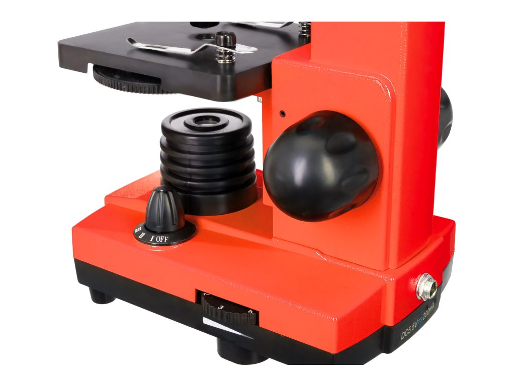 Plastové tělo tohoto mikroskopu je mnohem lehčí než v případě kovového těla –