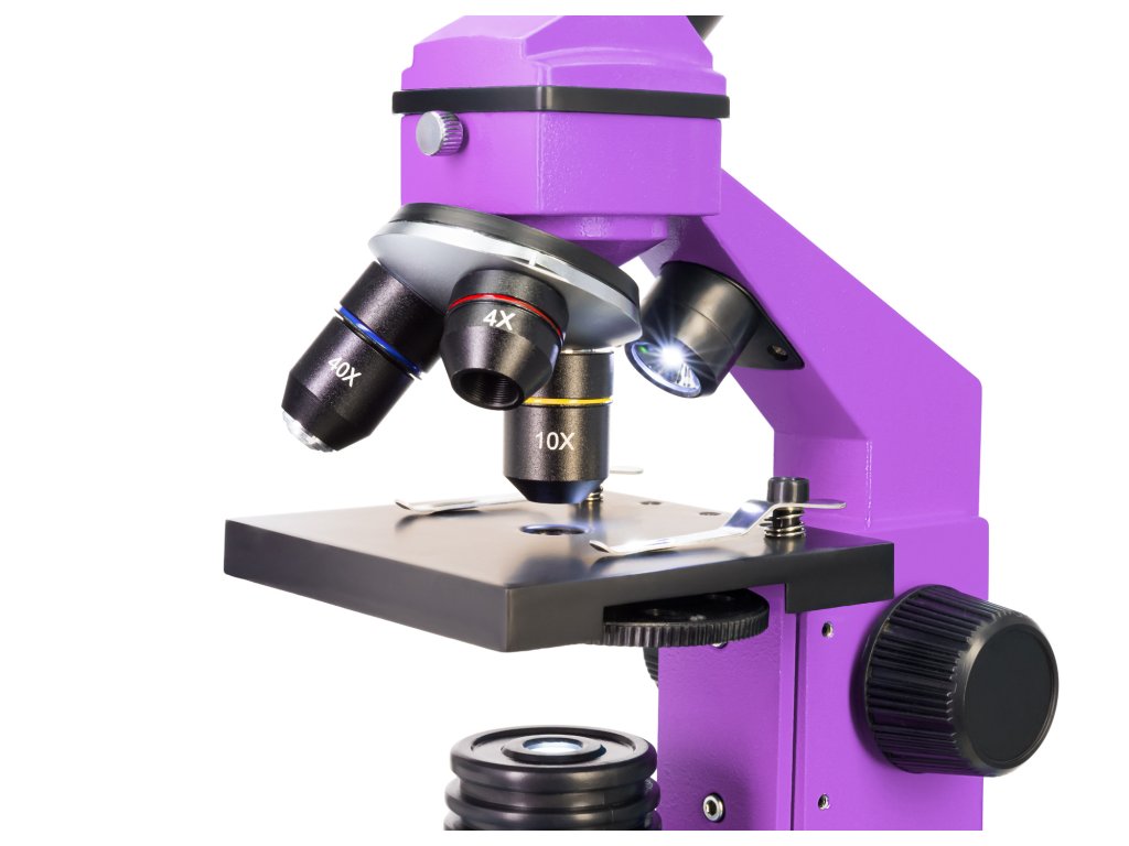 Mikroskop Levenhuk Rainbow 2L PLUS bude vynikající volbou pro žáka, jehož koníčkem je biologie, i pro studenta medicíny při seriozním výzkumu. Tento model má řadu výhod: kvalitní optiku s několikanásobnou antireflexní vrstvou, široký rozsah zvětšení od 64x do 640x, schopnost pozorovat průhledné i neprůhledné objekty a spolehlivé tělo. Začátečníci jistě ocení pokusnou sadu Levenhuk K50, která se dodává společně s mikroskopem. Díky svému krásnému, barevnému designu vyčnívá mikroskop Levenhuk Rainbow 2L PLUS z řady jiných podobných biologických mikroskopů.