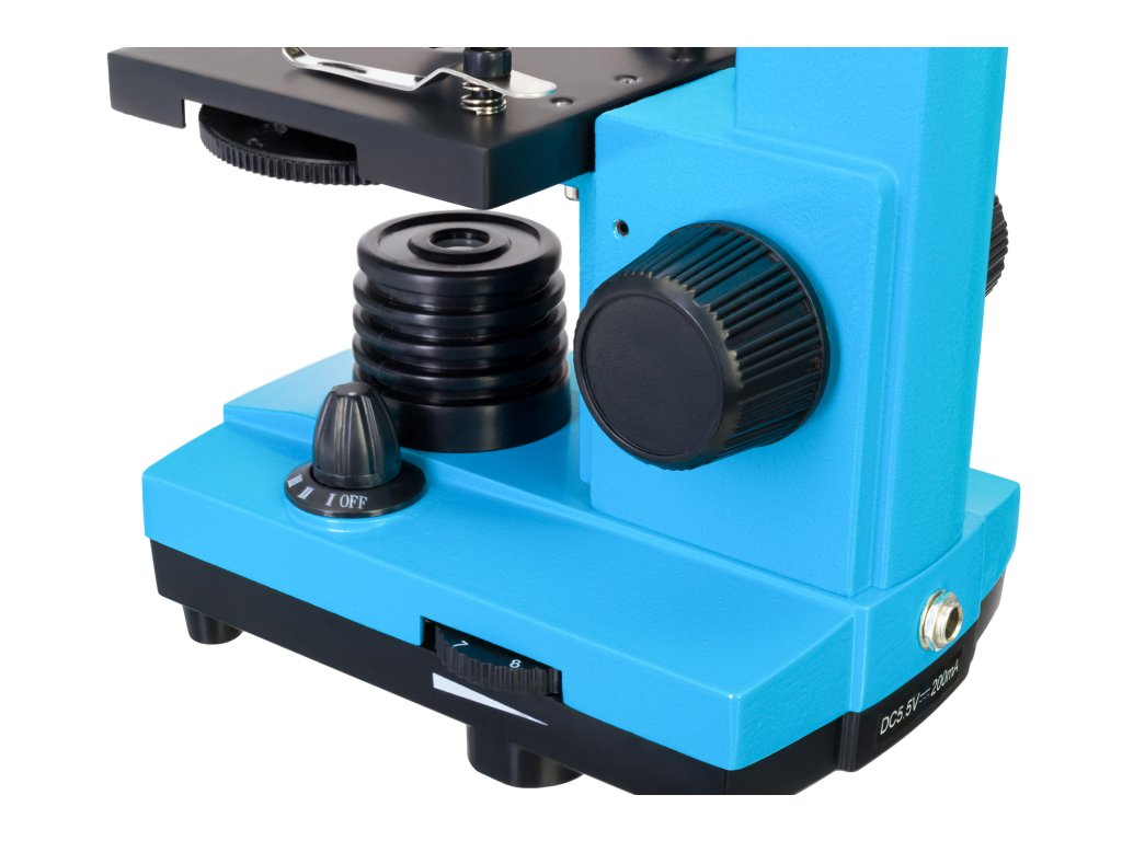 K napájení osvětlení je třeba, aby byl mikroskop připojen k elektrické síti. Není-li v blízkosti žádná zásuvka, můžete použít baterie – to je užitečné zejména při provádění výzkumu ve venkovním prostředí.