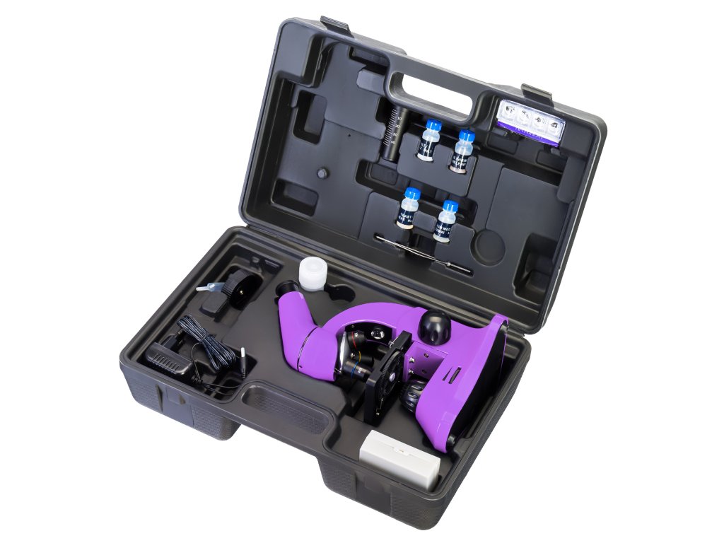Mikroskop se dodává ve spolehlivém a praktickém plastovém kufříku. Díky