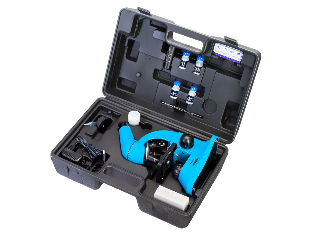 Robustní plastový kufřík zajišťuje bezpečnou přepravu mikroskopu a veškerého