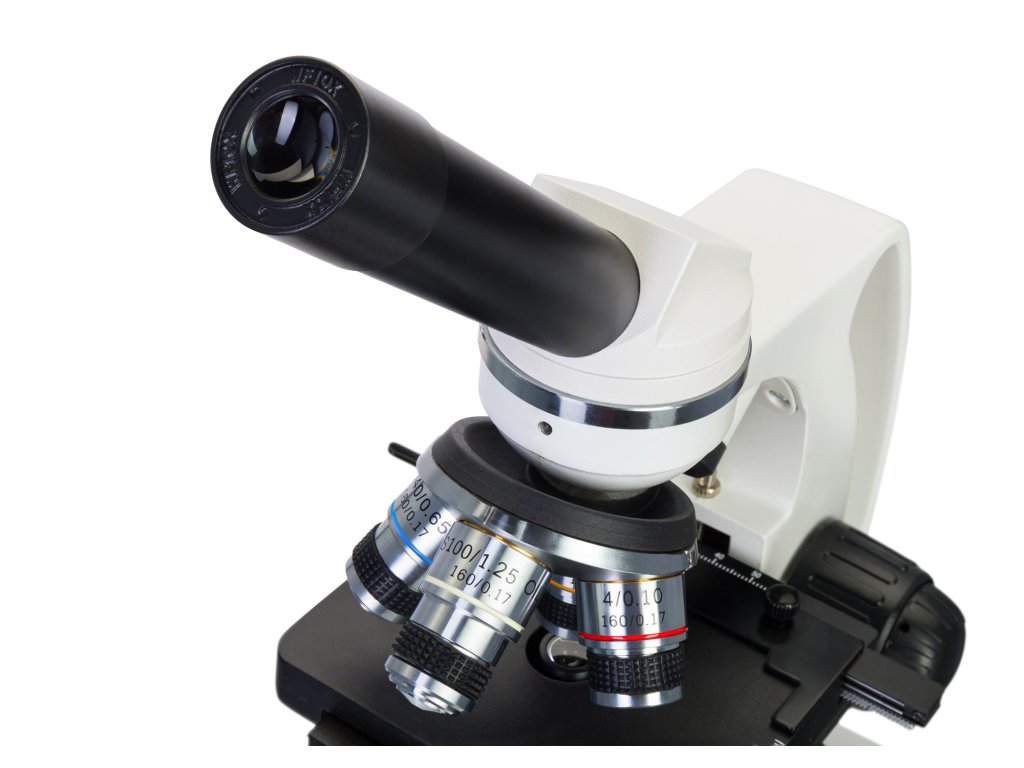 Mikroskop je vybaven otočnou monokulární hlavou se sklonem 45°, což usnadňuje dlouhá pozorování nebo skupinové experimenty. Když si několik lidí potřebuje prohlédnout stejný vzorek, hlavu mikroskopu můžete natočit a není nutné přemisťovat celý přístroj.