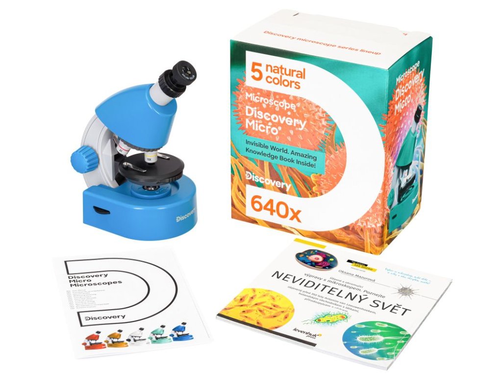 Levenhuk Discovery Micro je biologický mikroskop základní úrovně, který umožňuje pozorovat průhledné vzorky. Mohou to být hotové preparáty, mikrosvět v kapce vody nebo vlastní preparáty. Mikroskop je malý a lehký, a je tak snadno přenosný. Proto jej můžete používat nejen doma, ale můžete si jej vzít s sebou také na výlet nebo na venkov do přírody.