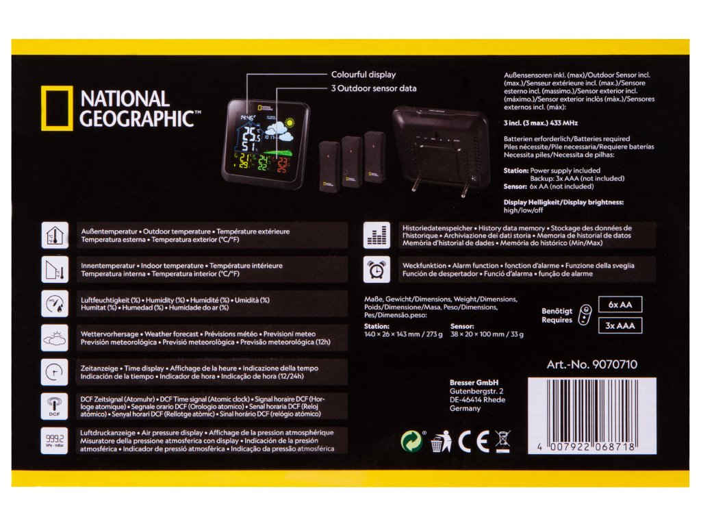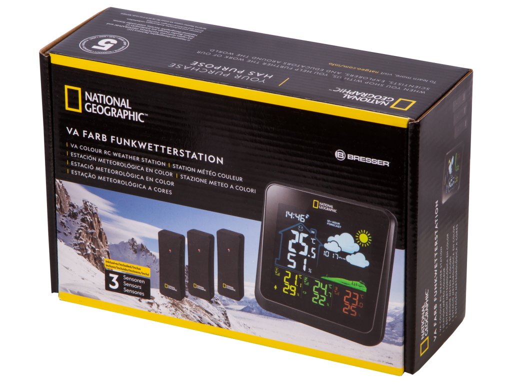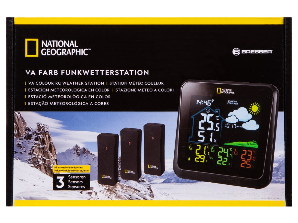 Barevná meteostanice Bresser National Geographic VA se 3 venkovními senzory
