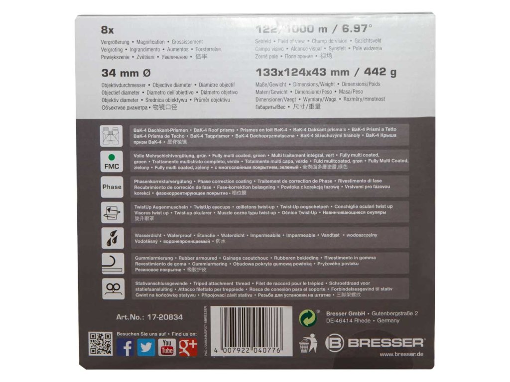 These premium "allround" binoculars of the Bresser Pirsch series is for every application range the right one, whether on vacation, journey, while hiking or hunting.