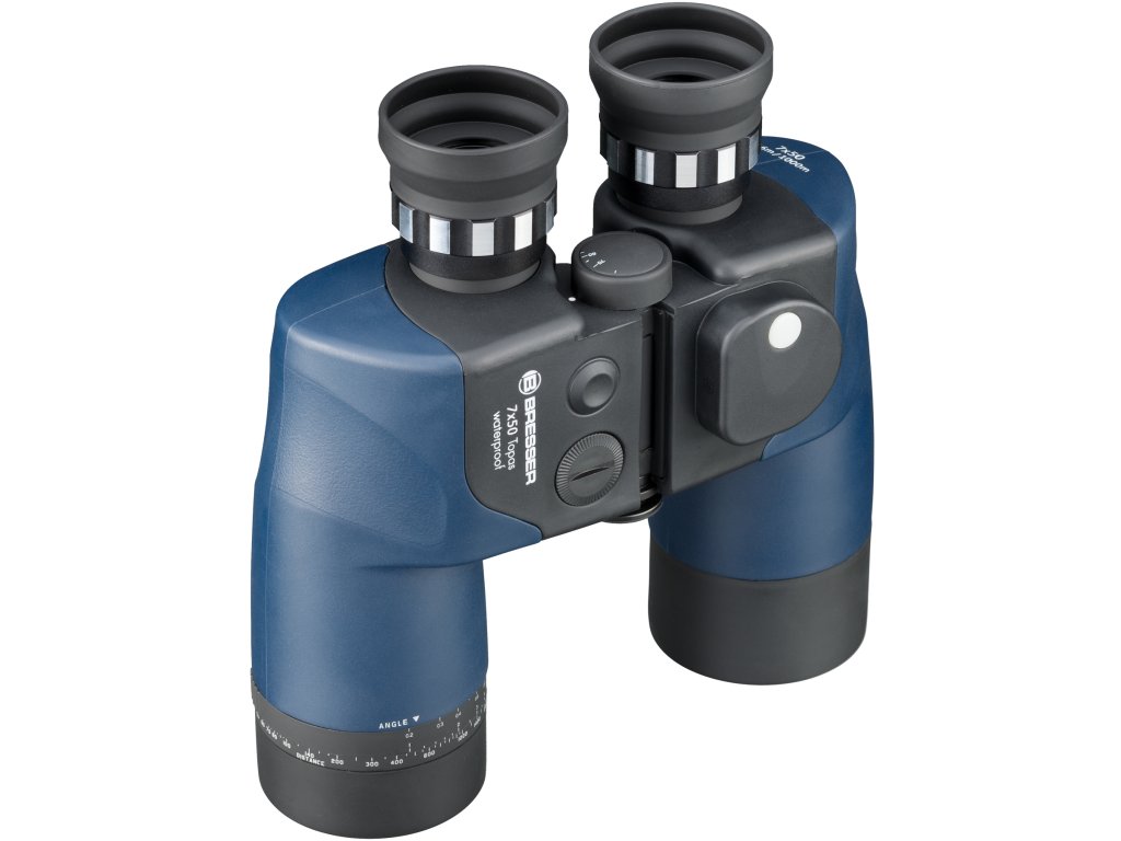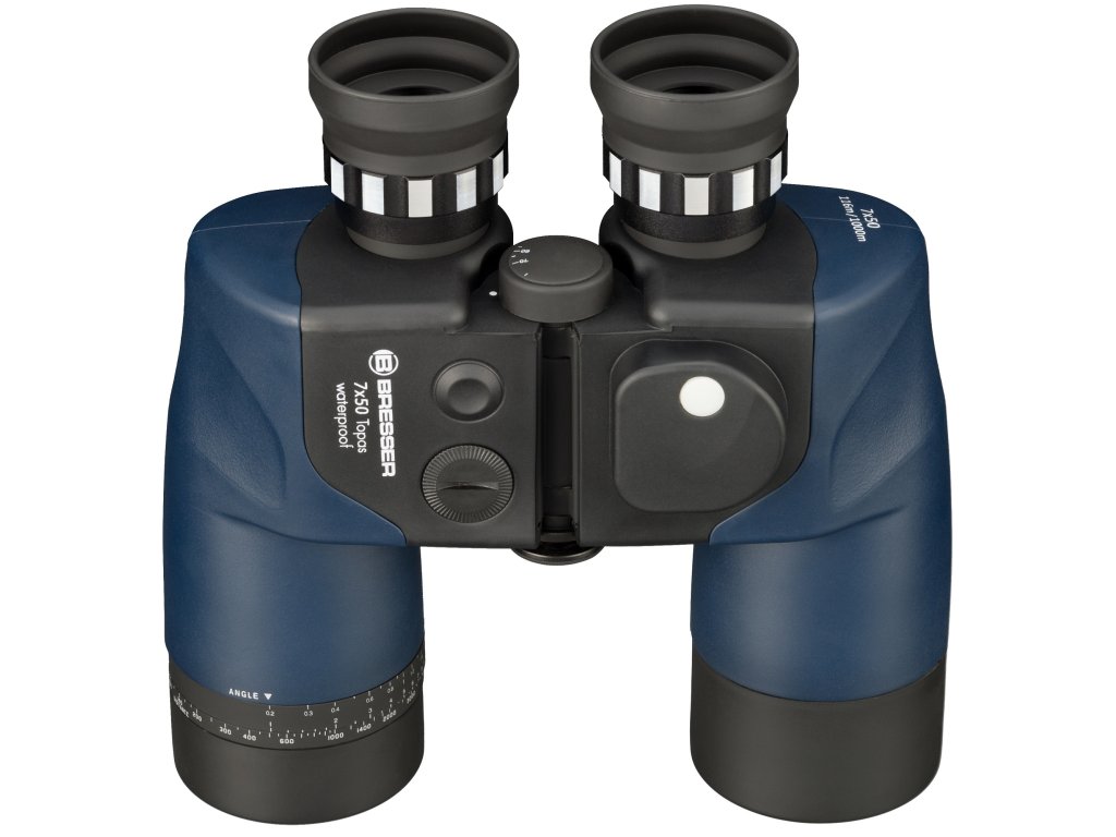 Bresser Topas 7x50 je klasický námořní dalekohled s porro hranoly. Optika poskytuje dobrý výkon za šera a 7x zvětšení je osvědčeným standardem pro toto použití. Navíc má Topas integrovaný a podsvícený magnetický kompas a záměrnou osnovu pro určování velikostí nebo vzdáleností s pomocí kruhové stupnice na objektivu. Dalekohled je vodotěsný. Díky ergonomickému pogumování dobře sedí v ruce a je chráněn proti nárazům. Po nastavení dioptrií jednotlivých okulárů získáte ostrý obraz pro všechny důležité námořní vzdálenosti.
