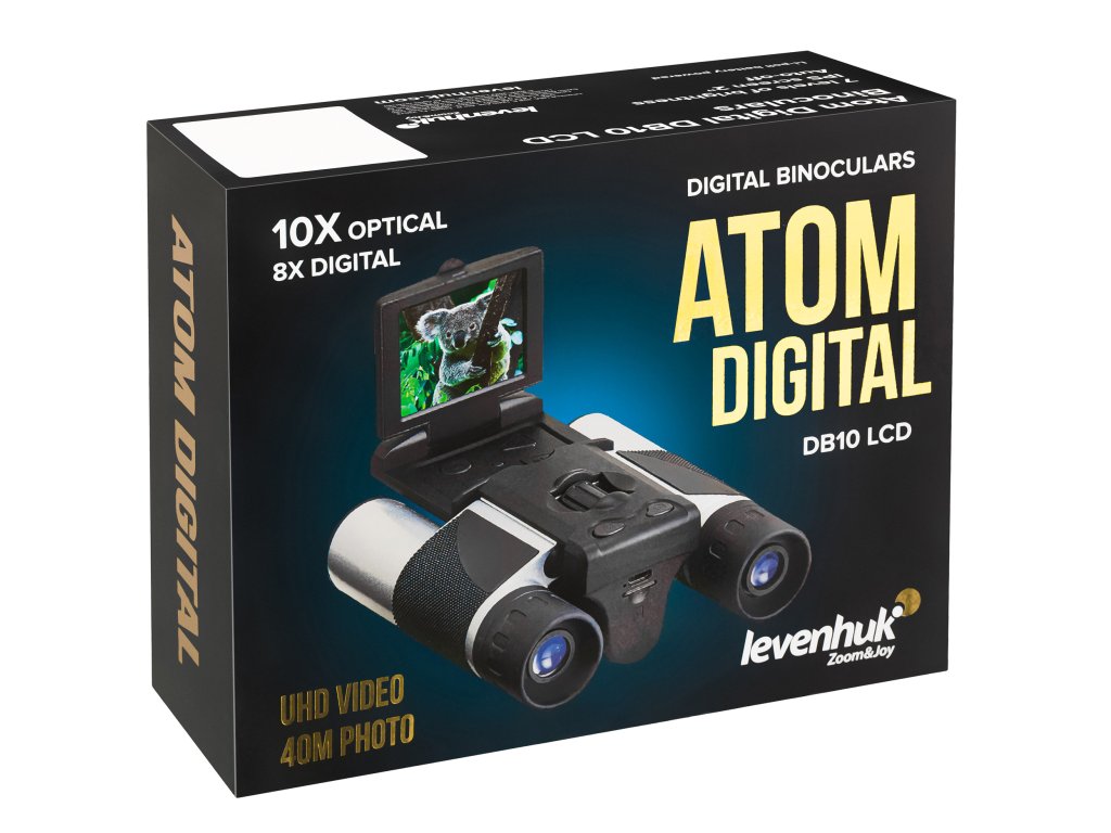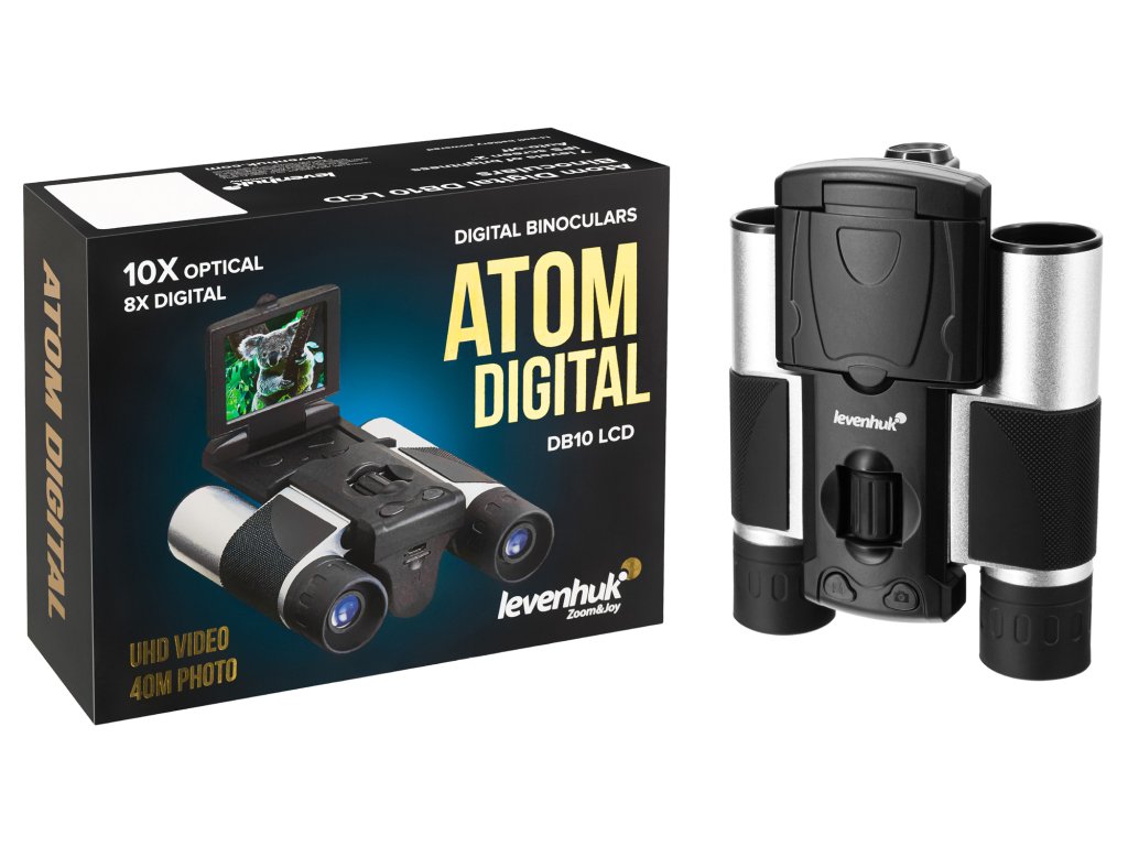 Levenhuk Atom Digital DB10 LCD je kompaktní přístroj s vestavěným 2palcovým LCD displejem a videorekordérem určený k prohlížení a pořizování fotografií a videí během dne. Dobře se osvědčí při lovu, sportu, ornitologických výpravách nebo kempování. Milovníci přírody ocení funkčnost tohoto binokulárního dalekohledu: krajinu a faunu lze zaznamenávat ve formátu fotografie a videa se zvukem, přičemž proces fotografování lze ovládat přímo na obrazovce.