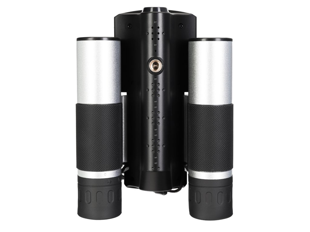 Optika binokulárního dalekohledu umožňuje pozorovat vzdálené objekty při 10x zvětšení; k dispozici je také digitální zoom až s 8x zvětšením. Inteligentní design s uzavřeným můstkem je doplněn výklopným 2palcovým LCD displejem, který vytváří vysoce kvalitní obraz tvořený snímačem CMOS. Zaostřovací kolečko umístěné v těle v blízkosti čoček objektivu umožňuje rychlé a snadné zaostření obou čoček objektivů. Můžete zaostřit na cíle v rozsahu 10–1000 m.