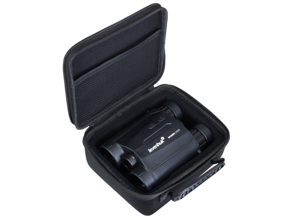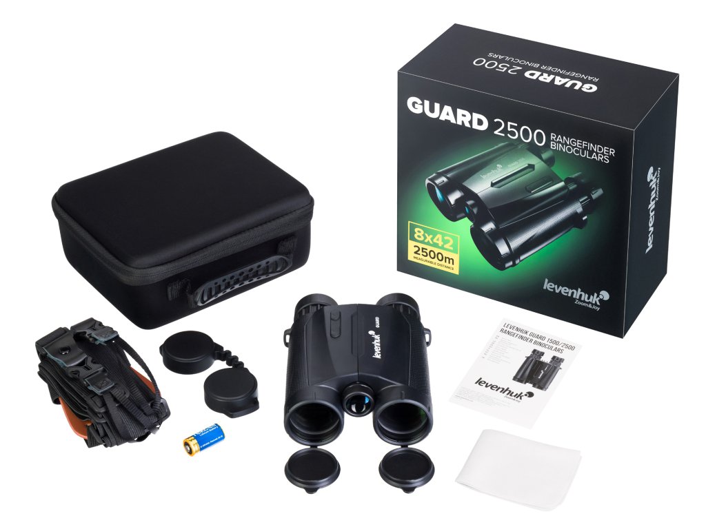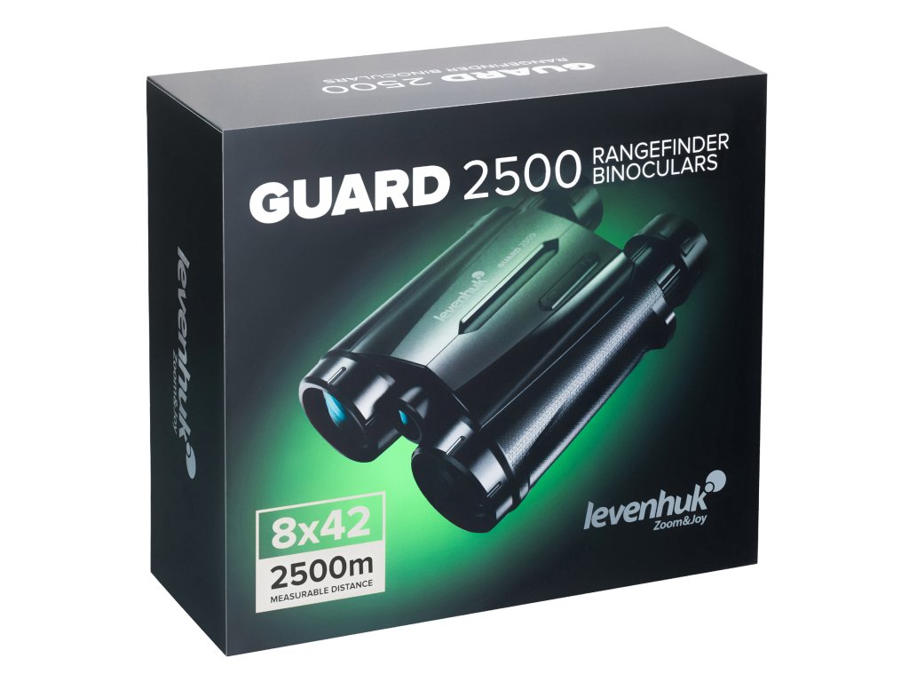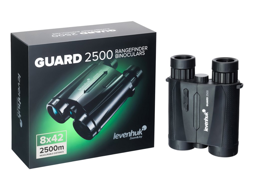 Levenhuk Guard 2500 je binokulární dalekohled s 8x zvětšením a vysokou světelností. Je vybaven laserovým dálkoměrem, který dokáže měřit vzdálenost k cíli a úhly terénu až do 2500 metrů. Na túry nebo lov již nemusíte nosit dva optické přístroje. Levenhuk Guard 2500 má všechny funkce, které budete potřebovat. Díky funkcím přístroje Levenhuk Guard 2500 budete moci provádět různé typy měření a řešit tak různé typy problémů, jako je: Měření vzdálenosti střely při sledování zvěře, měření vzdálenosti mezi klíčovými orientačními body (mosty, stožáry elektrického vedení, sloupy), sestavování mapy oblasti, hlídání rozsáhlých území a hranic atd.