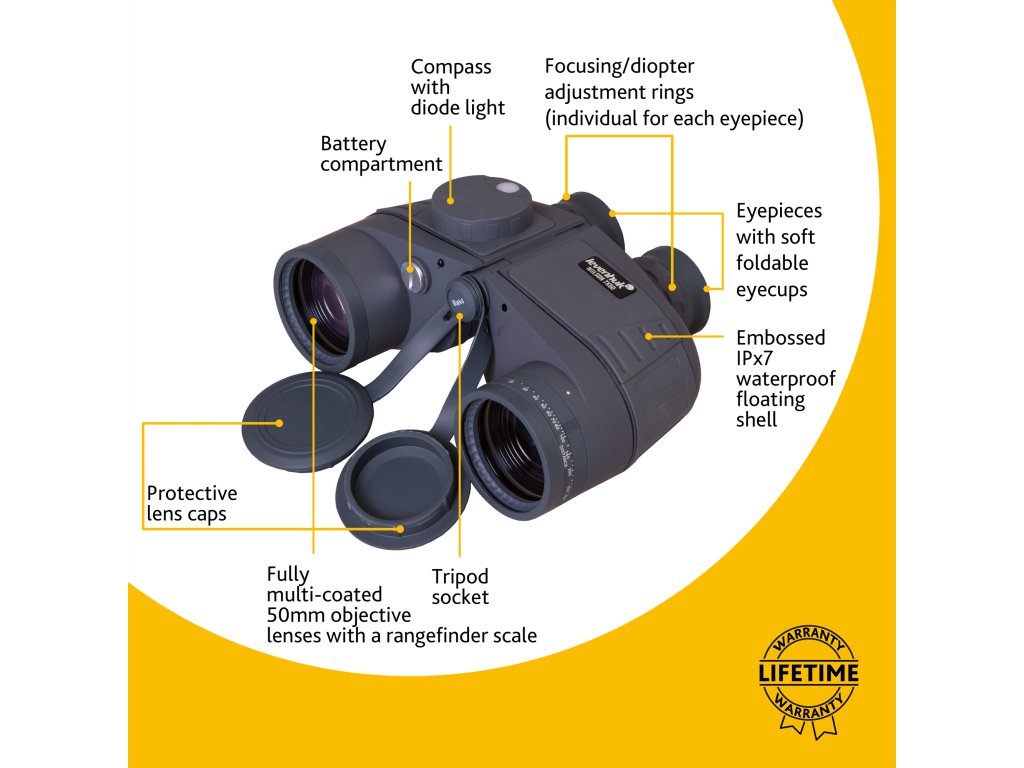 Binokulární dalekohled Levenhuk Nelson 7x50 se zaměřovačem a kompasem