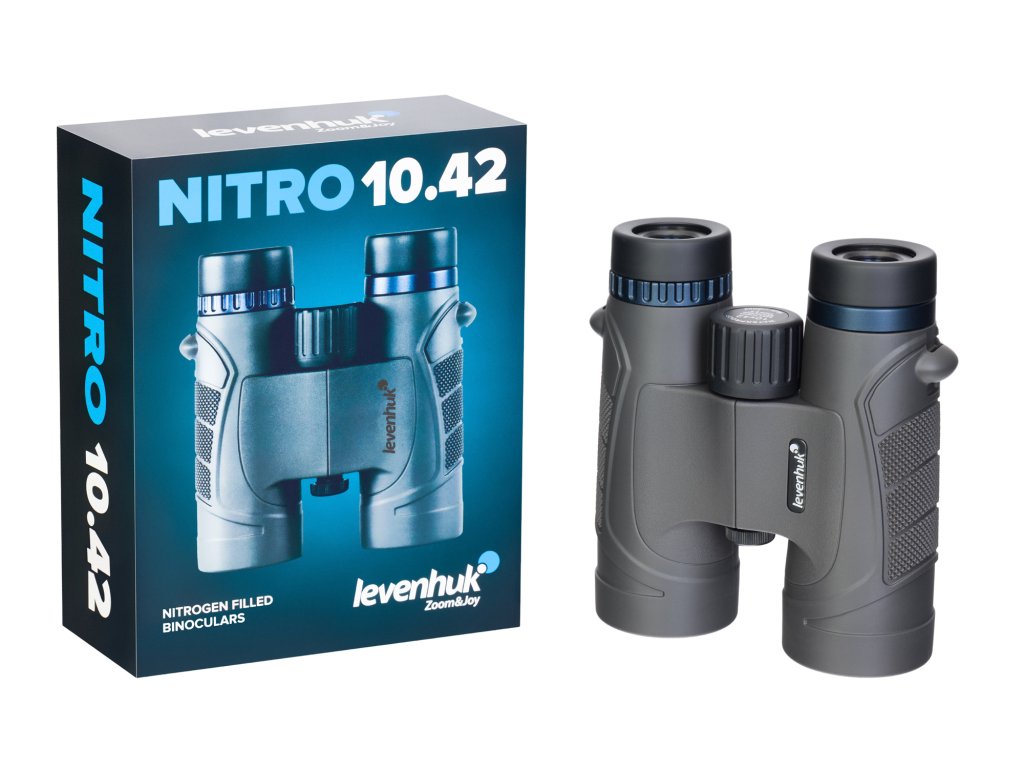Levenhuk Nitro 10x42 představuje pár uzavřených polních dalekohledů plněných dusíkem. Proto jsou ideální pro drsné povětrnostní podmínky, zachovávají si plný výkon při vysoké vlhkosti a přímém působení vody. Optika poskytuje vždy jasný obraz – čočky se nemlží ani při extrémních změnách teplot. Tyto dalekohledy jsou ideální volbou pro koníčky i práci.