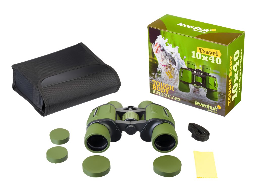 S binokulárním dalekohledem Levenhuk Travel 10x40 budete připraveni na jakékoliv dobrodružství! Tento optický přístroj v odolném hliníkovém těle je skutečným objevem pro lidi, kteří rádi tráví čas venku při lovu a rybaření. Můžete jej používat k prozkoumávaní okolí a sledování různých cílů při 10x zvětšení. Nejkratší zaostřovací vzdálenost je 4 metry, takže je stejně vhodný pro zkoumání vzdálené krajiny i pro pozorování objektů, které jsou vzdálené jen několik kroků.