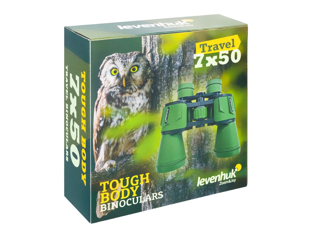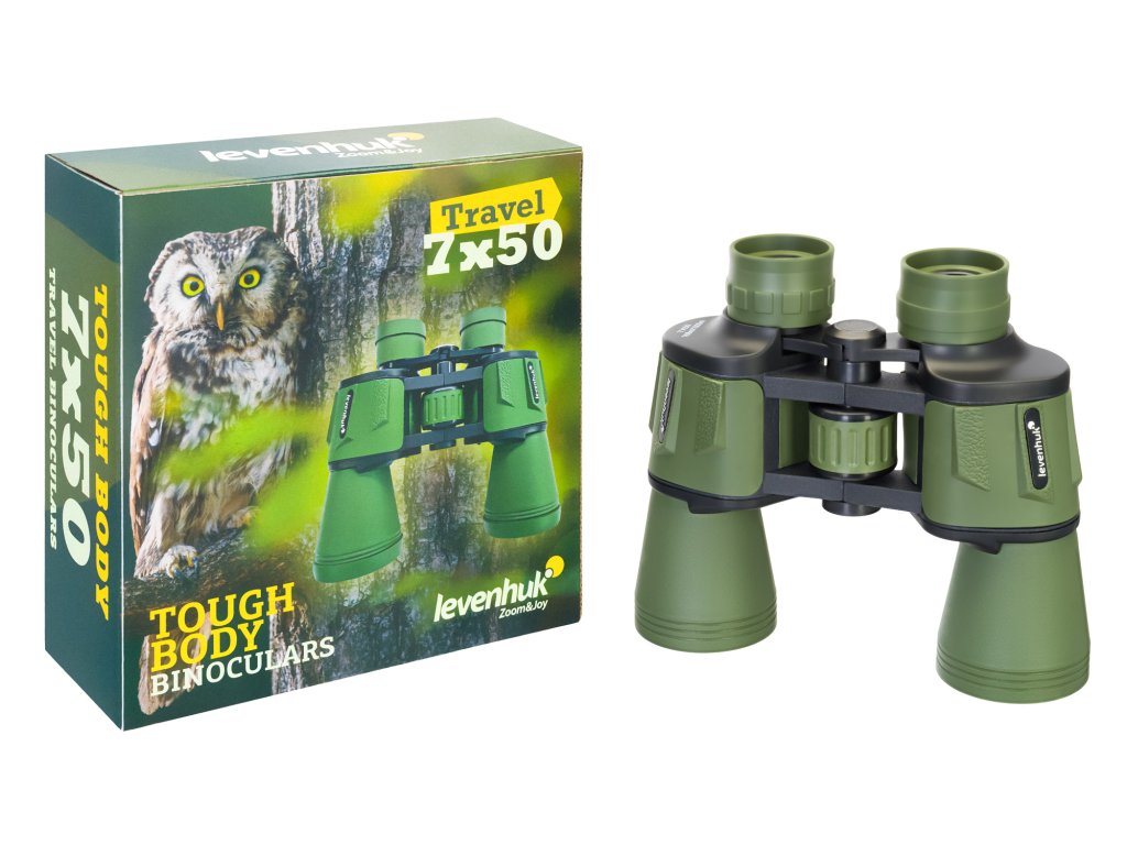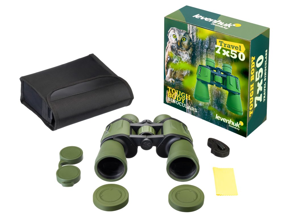 Optika binokulárního dalekohledu Levenhuk Travel 7x50 je založena na Porro hranolech. Optika binokulárního dalekohledu je vyrobena z plně potaženého skla BK-7. Díky kombinaci tohoto skla s velkými 50 mm čočkami objektivu, které zachycují hodně světla, poskytují tyto binokulární dalekohledy dokonale jasný a vysoce kontrastní obraz. I za soumraku nebo za oblačného počasí bude obraz ostrý, jasný a čistý. Čočky objektivu se zaostřují pomocí centrálního zaostřovacího kolečka. Pro osoby se zhoršeným zrakem je možné sklopit očnice pro pozorování s nasazenými brýlemi a upravit dioptrie.