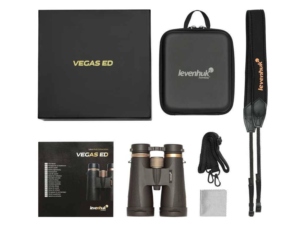 Binokulární dalekohled Levenhuk Vegas ED 12x50 je optický přístroj pro náročné uživatele, kteří očekávají, že jim přinese vysokou kvalitu, podrobný obraz a odolá extrémním podmínkám. Tento binokulární dalekohled je ideální pro venkovní pozorování. Je možné si jej vzít na lov, rybolov nebo vysokohorský výlet. Levenhuk Vegas ED 12x50 obsahuje optiku s extrémně nízkými hodnotami rozkladu světla, čtyřprvkové okuláry a vodotěsné tělo naplněné dusíkem.