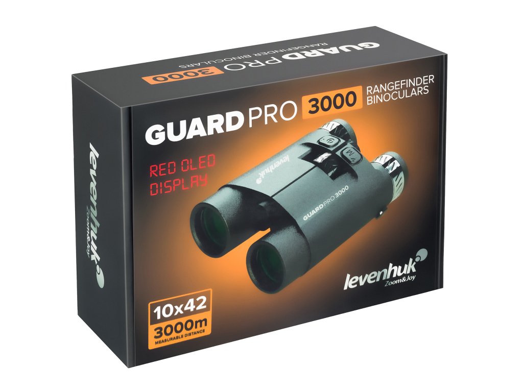 Binokulární dalekohled Levenhuk Guard PRO 3000 patří do nové řady Levenhuk Guard PRO. Tento přístroj kombinuje funkce klasického polního binokulárního dalekohledu s funkcemi laserového dálkoměru. Je flexibilně přizpůsobitelný a představuje účinný nástroj pro profesionály. Lze jej využít při lovu, pozorování v terénu, sportu (střelbě) a dalších činnostech, při kterých je důležité nejen vidět objekt na velkou vzdálenost, ale také znát přesnou vzdálenost k tomuto objektu. Optika binokulárního dalekohledu přiblíží objekt 10x (10x zvětšení) a má dobré zorné pole (91/1000 m). Díky střechovým hranolům vyrobeným ze skla BaK-4 s vysokým indexem lomu a plně vícenásobně potaženým čočkám je obraz ostrý, čistý a zřetelný s detaily jasně viditelnými i za soumraku nebo za špatného počasí.