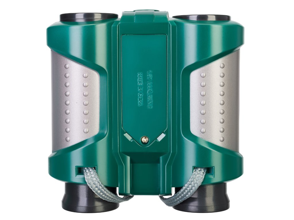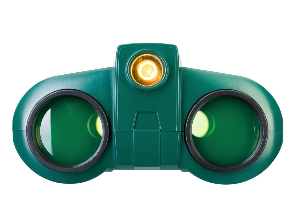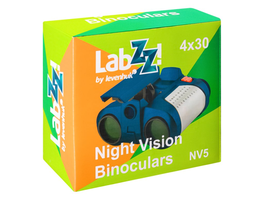 Levenhuk LabZZ NV5 – binokulární dalekohled s nočním viděním pro děti, který umožňuje pozorování zvětšených objektů během dne a dokonce i za soumraku. Přístroj se bude hodit při vícedenní pěší túře nebo při večerní rodinné procházce na dovolené. Nedostatek denního světla není problém: tento binokulární dalekohled je vybaven výsuvnou svítilnou, která vám pomůže vidět spoustu zajímavých věcí. Barevná čočka, která je umístěna pod svítilnou, způsobuje, že pozorovaný obraz zezelená, stejně jako u skutečných přístrojů s nočním viděním, které používají dospělí.