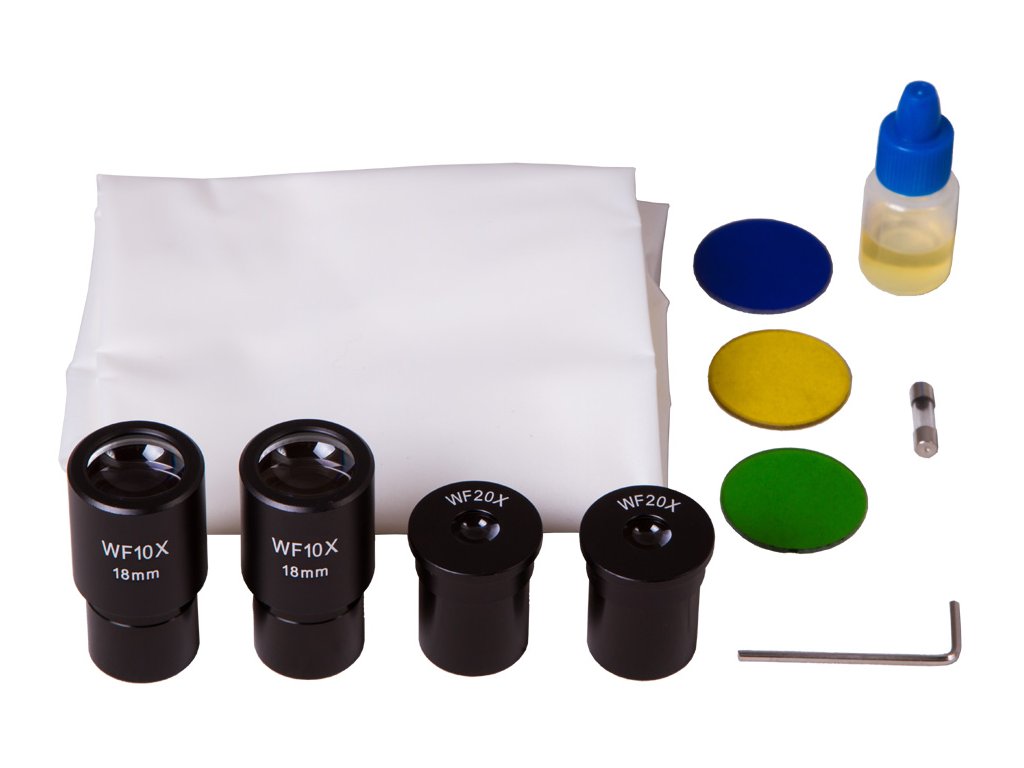 Mikroskop Levenhuk 720B je určen k pozorování průhledných mikroskopických preparátů. Používané výzkumné metody: metoda světlého pole a imerzní metoda. Sada obsahuje vysoce kvalitní achromatické objektivy a lahvičku s imerzním olejem. Mikroskop se navíc dodává se dvěma páry vyměnitelných okulárů: 20x Huygensovým a 10x okulárem. Široká sada příslušenství vám umožní vybrat si optimální úroveň zvětšení a zorné pole k pozorování konkrétních mikroskopických preparátů. Rozsah zvětšení mikroskopu se pohybuje od 40x do 2000x.