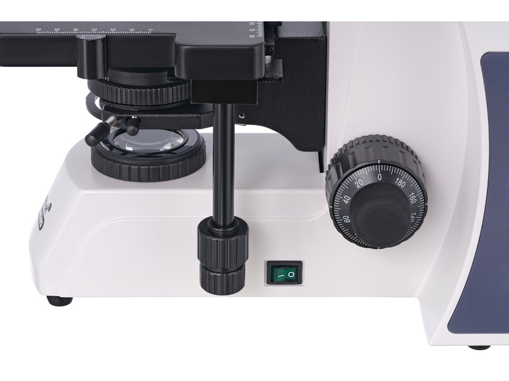 Stolek s mechanickou stupnicí se může pohybovat ve dvou směrech. Světelný zdroj je umístěn pod stolkem. Jedná se o systém 5 W LED s nastavením jasu. Intenzita světla se nastavuje pomocí Abbe kondenzoru s irisovou clonou.