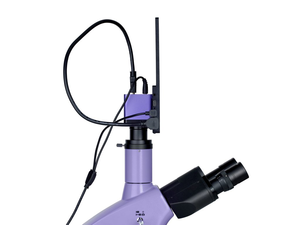 Trinokulární hlava má vertikální tubus pro upevnění digitálního fotoaparátu. Fotoaparát je vynikajícím řešením pro vytváření digitálních archivů studií a výstup snímků na obrazovku externího monitoru. Aby bylo možné pozorovací tubusy přizpůsobit výšce uživatele, je k dispozici možnost jejich otáčení o 360°. Levý tubus je vybaven kroužkem pro nastavení dioptrií.