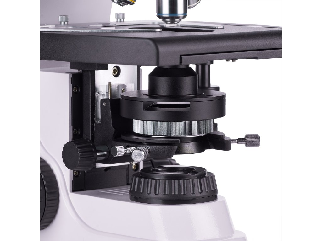 Abbeho kondenzor má slot pro posuvník tmavého pole nebo fázového kontrastu. Díky posuvníkům je přepínání mezi mikroskopickými technikami mnohem rychlejší. Mikroskop je také vybaven polní clonou pro nastavení Köhlerova osvětlení. Kondenzor je výškově nastavitelný a lze jej vycentrovat.