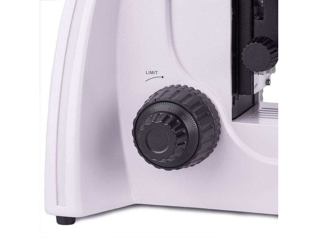 Zaostřovací knoflíky jsou souosé a jsou umístěny na obou stranách mikroskopu, takže uživatel může volně položit ruce na stůl. K dispozici jsou knoflíky pro jemné a hrubé zaostřování. Mechanismy se pohybují plynule, a proto není třeba vynaložit žádné další úsilí. K dispozici je knoflík pro nastavení tuhosti hrubého ostření a aretační knoflík hrubého ostření.