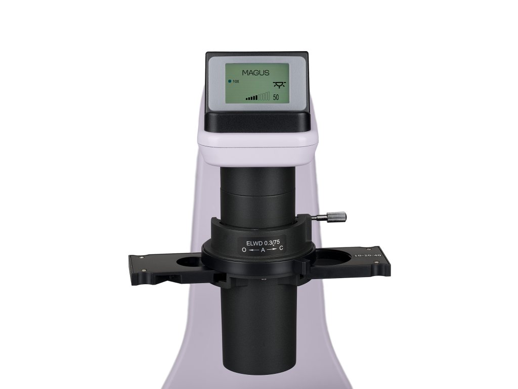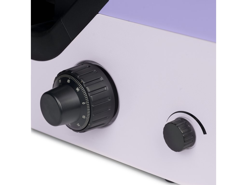 Objektivy různých zvětšení propouštějí světlo s různou úrovní intenzity, a proto je třeba při každé změně objektivu upravit jas světla. Kromě toho se jas prudce zvyšuje při přechodu z objektivu s větším zvětšením na objektiv s menším zvětšením. Prudké zvýšení jasu způsobuje únavu očí. Mikroskop MAGUS Bio V360 je vybaven inteligentní regulací jasu. Mikroskop si pamatuje jas pro každý objektiv, který uživatel zvolil, a automaticky tento jas nastaví při otočení revolverového nosiče objektivů. Inteligentní ovládání zkracuje dobu potřebnou k nastavení jasu. Mikroskop MAGUS Bio V360 zvyšuje uživatelský komfort a šetří čas i v případě, že práce vyžaduje časté změny zvětšení.