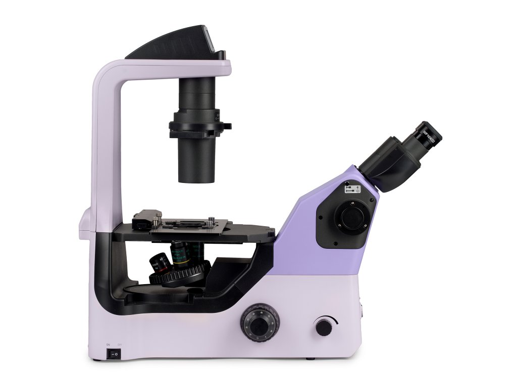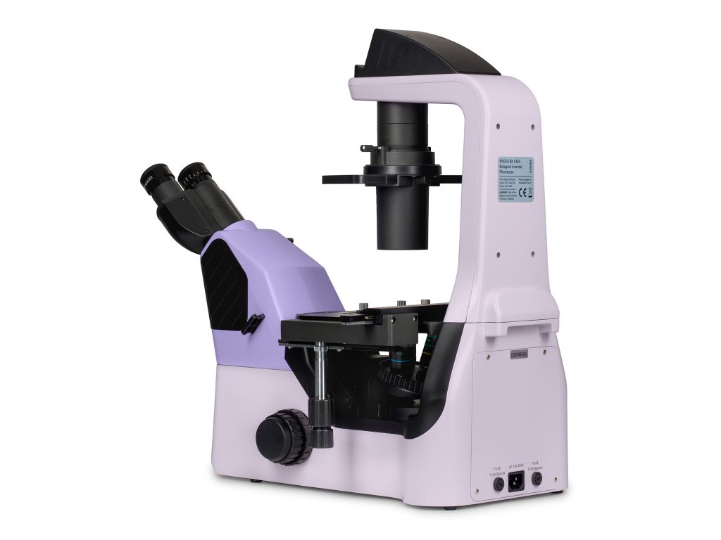 Jeho obrácená (inverzní) konstrukce umožňuje použití Petriho misek, vícejamkových destiček, lahviček, válečkových láhví a baněk o průměru až 75 mm s tloušťkou dna 1,2 mm. Pro práci s tímto laboratorním skleněným nádobím používá mikroskop používá speciální objektivy.