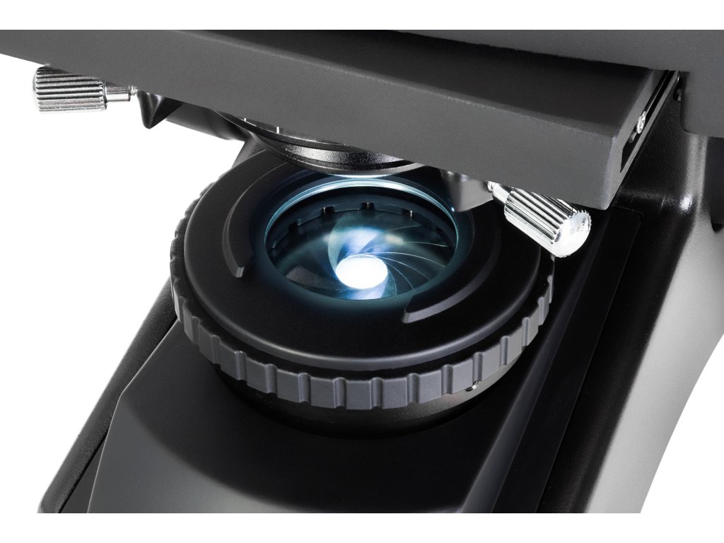 Světelný zdroj je umístěn pod stolkem a Abbeovým kondenzátorem. LED dioda je ovládána na základě jasu a je napájena zdrojem s napětím 220 V. Díky LED osvětlení je rozlišení mikroskopu vyšší než u analogů s halogenovými žárovkami. Jak aperturní, tak terénní clona umožňují nastavit Köhlerovo osvětlení.