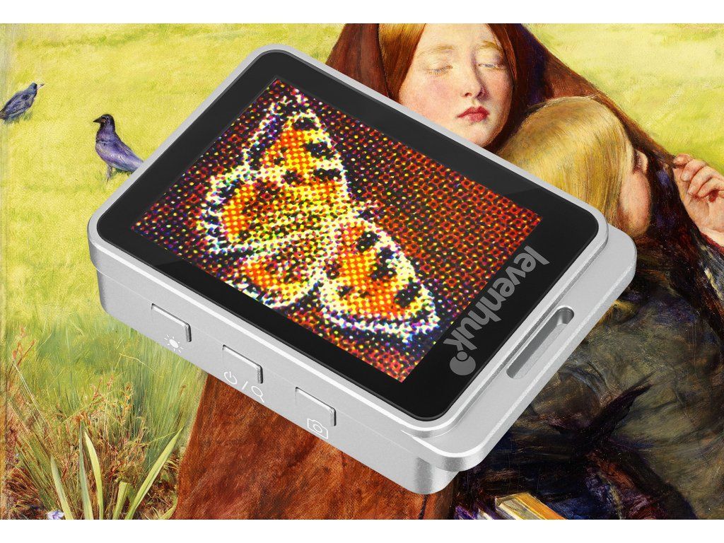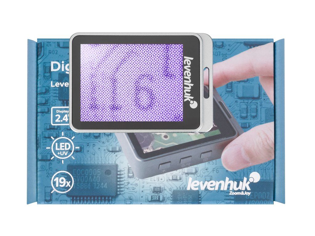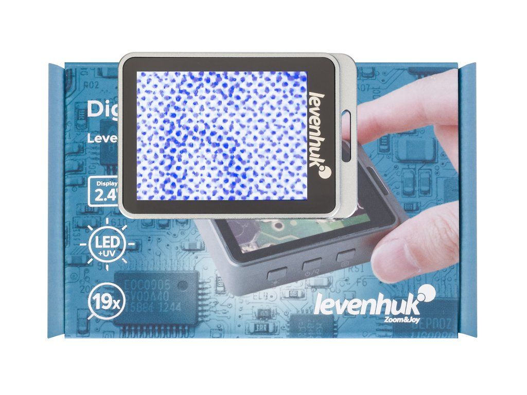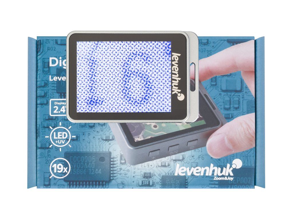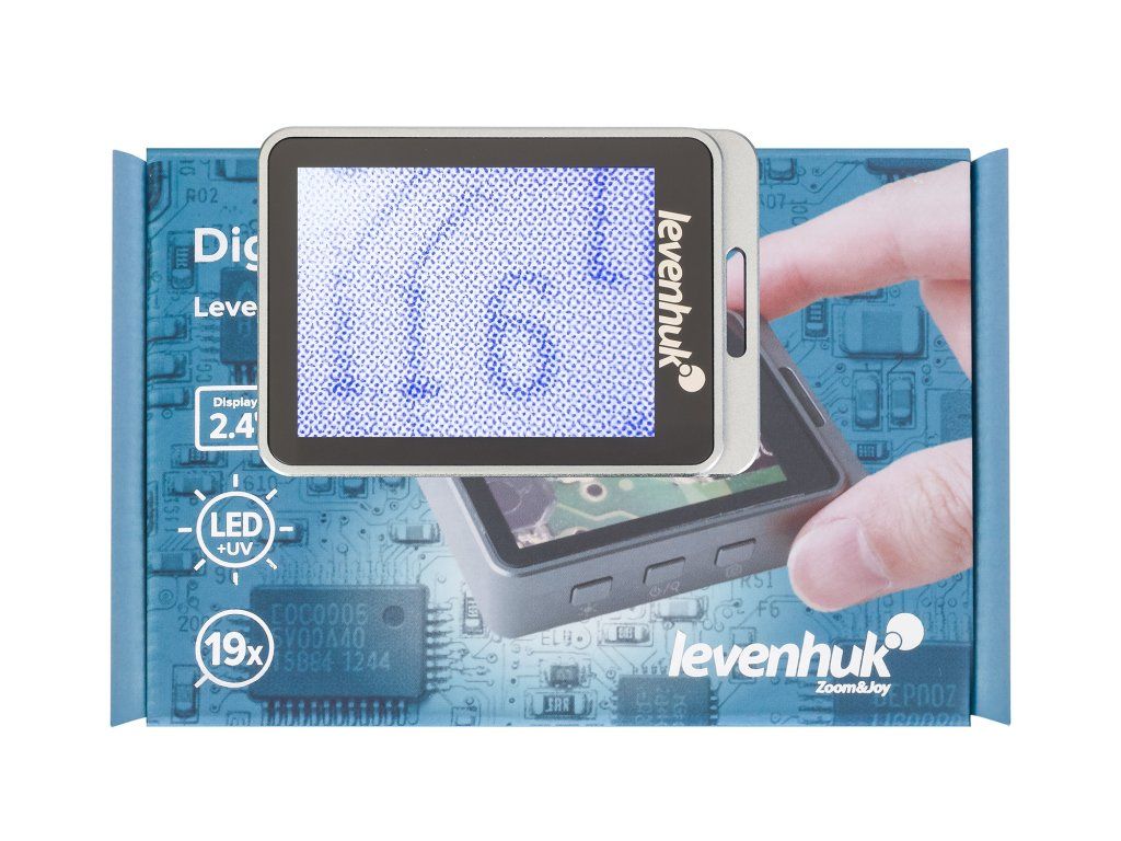 Lupa nabízí zvětšení 7x, 12x a 19x: 7x zvětšení je dosaženo opticky, zatímco 12x a 19x je digitální zvětšení. Na barevné LCD obrazovce s pohodlnou úhlopříčkou 2,4" se zobrazí zvětšený snímek. Duální osvětlení umožňuje zvolit požadovaný provozní režim pomocí ultrafialového nebo běžného bílého světla.