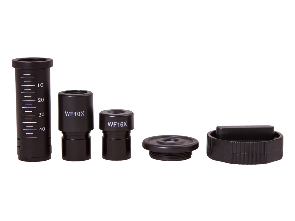 Mikroskop je vybaven revolverovým nosičem se třemi objektivy. Kromě dvou standardních okulárů je vybaven video okulárem, který vám umožňuje zobrazit pozorovaný preparát na obrazovce počítače, notebooku nebo televizoru. Abyste mohli tento USB okulár používat, musíte si nainstalovat speciální software (je součástí dodávky).