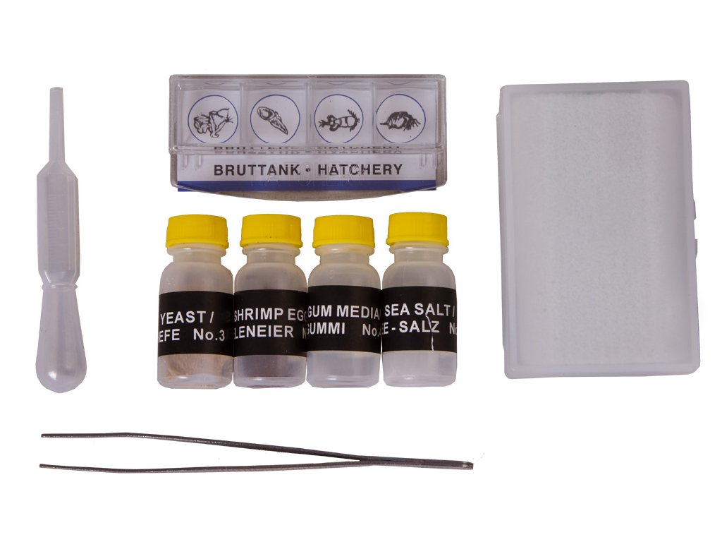 - Lahvičky s kvasnicemi, mořskou solí, žábronožkami a kanadským balzámem