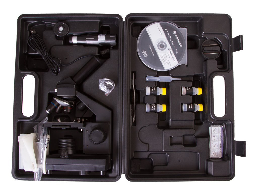 Důležitou součástí sady mikroskopu Bresser National Geographic 40–1024x je bohatá pokusná souprava včetně nástrojů pro práci s preparáty. Obsahuje hotové preparáty, líheň k pěstování žábronožek a vše potřebné pro přípravu vlastních preparátů k výzkumu. Obsahuje hotové preparáty, líheň k pěstování žábronožek a vše potřebné pro přípravu vlastních preparátů k výzkumu. Součástí dodávky je i obal proti prachu a kufřík určený k přepravě a uložení mikroskopu a příslušenství.