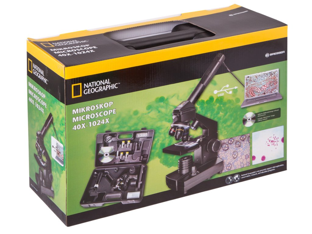 Bresser National Geographic 40–1024x je digitální mikroskop určený ke studiu a k zájmovým činnostem a nabízející zvětšení v rozsahu 40 až 1024x. Jedná se o spolehlivý a funkční přístroj vhodný k pozorování transparentních, polotransparentních i neprůhledných objektů, který vám umožňuje provádět prezentace a ukládat výsledky výzkumu na počítači.