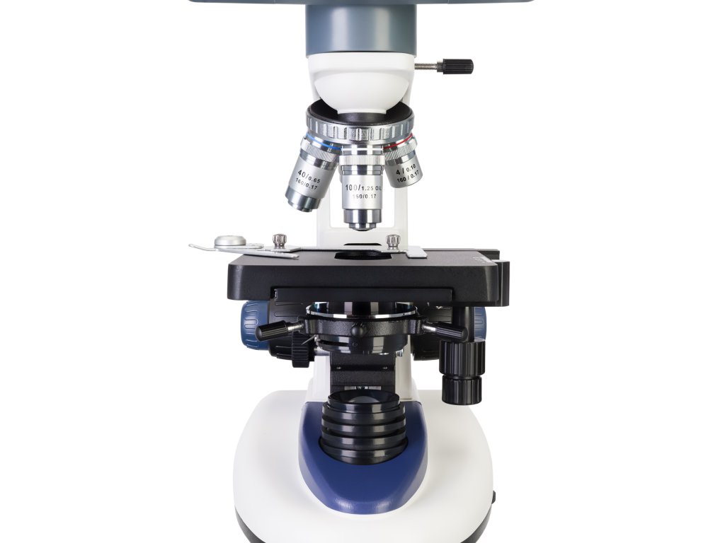 Mikroskop s 2 Mpx digitálním fotoaparátem a LCD obrazovkou - Achromatické čočky objektivu: 4x, 10x, 40x a 100x (olejová lázeň)