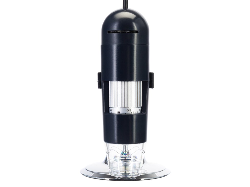 Mikroskop je vybaven 2 Mpx digitálním fotoaparátem (namísto čočky objektivu), který vám umožní zachytit obraz s rozlišením 1600x1200 pixelů. Zvětšení lze měnit od 20x do 230x; manuální ostření je k dispozici od 0 mm do 150 mm. Za špatných světelných podmínek můžete zapnout podsvícení, které se skládá z 8 jasných LED diod s nastavitelným osvětlením.
