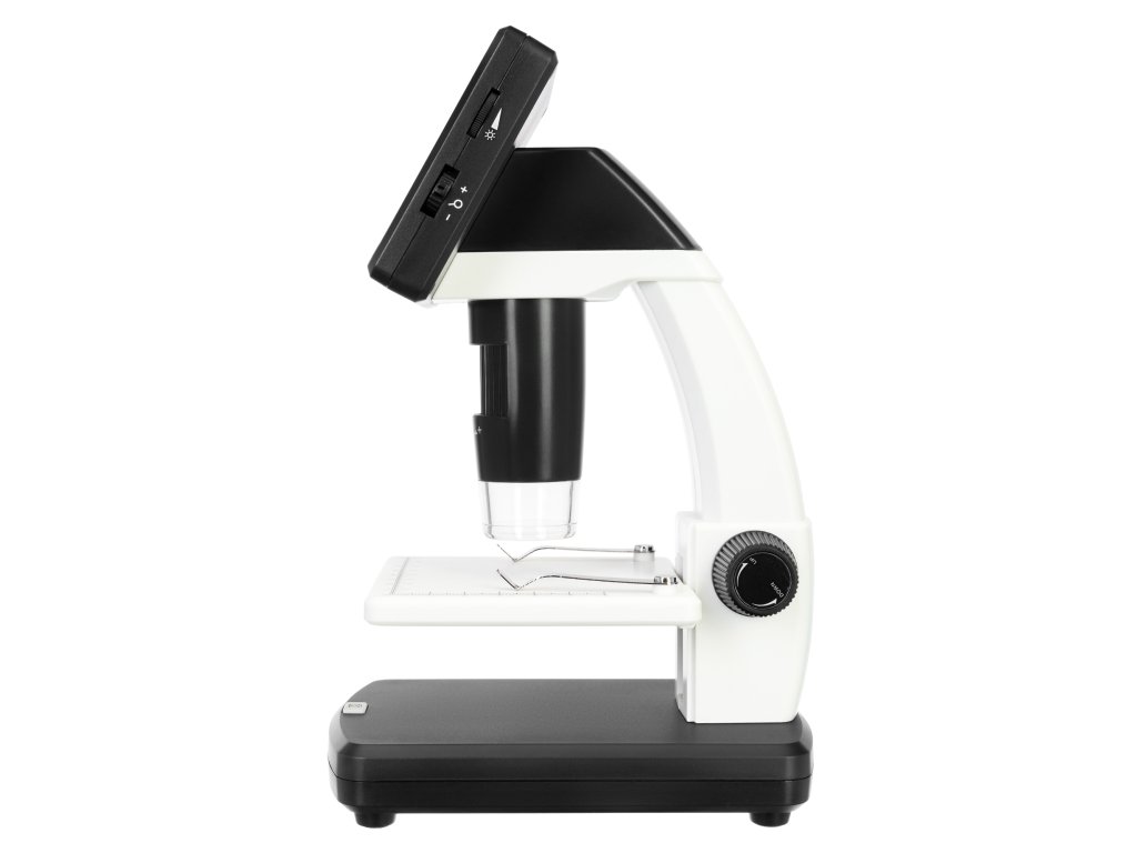 Digitální mikroskop DTX 500 LCD s vestavěným LCD displejem vám umožňuje studovat preparáty při zvětšení 20x až 500x a výsledky své práce ukládat v obrazovém nebo video formátu na kartu microSD. Osm vestavěných LED žárovek rovnoměrně osvětluje pracovní plochu a zajišťuje minimální spotřebu energie. Osvětlovací systém je vybaven regulací jasu.
