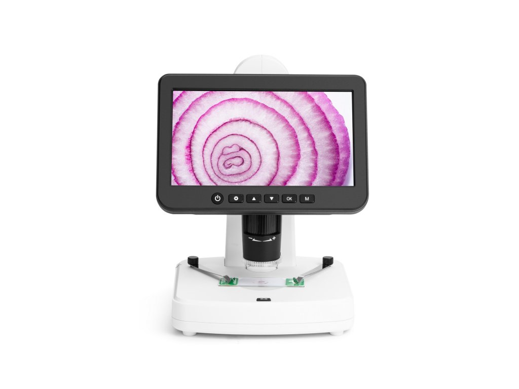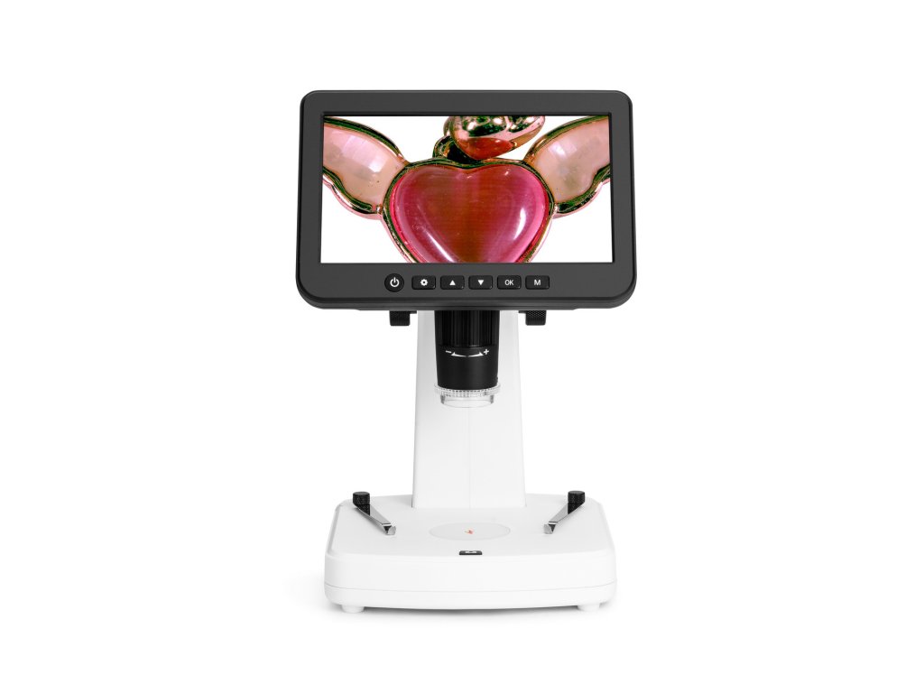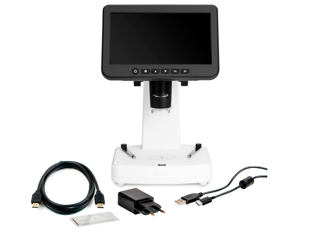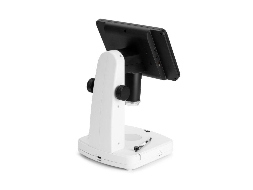 4 MP digitální fotoaparát s citlivým snímačem CMOS vytváří vysoce kvalitní obraz. Uživatel vidí jasný, čistý a velmi detailní obraz na 7palcové IPS obrazovce s rozlišením 1024x600 px. Tato konfigurace zajišťuje pohodlné pozorování bez namáhání očí a krku, jak je to běžné u konvenčních mikroskopů. Fotoaparát lze také použít k pořizování fotografií a videí, přičemž je k dispozici několik možností rozlišení. Fotografie lze pořizovat v rozlišení 3 MP nebo 2 MP s možností interpolace pro rozlišení 16 MP, 12 MP, 10 MP, 8 MP nebo 5 MP. Videa se nahrávají v rozlišení 1440p při plynulé frekvenci 30 snímků za sekundu. Mikroskop Levenhuk DTX 800 LCD podporuje karty microSD s kapacitou až 128 GB, které jsou nutné pro ukládání pořízených materiálů.
