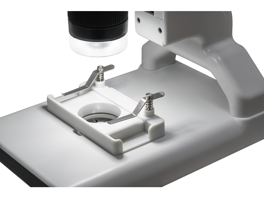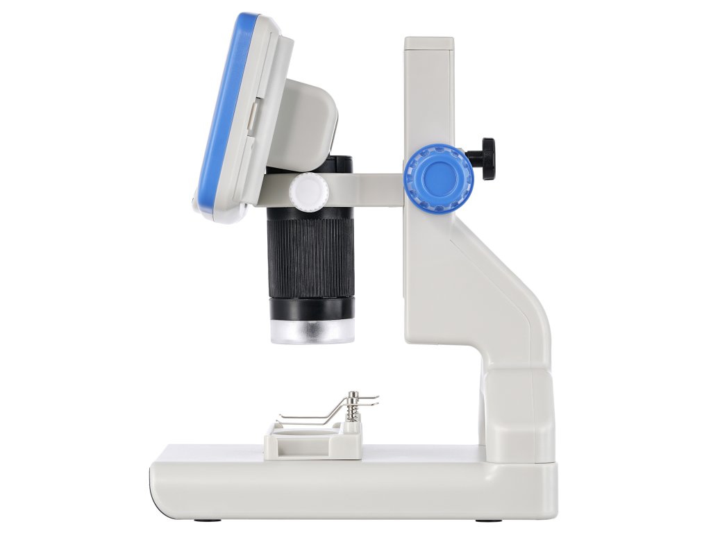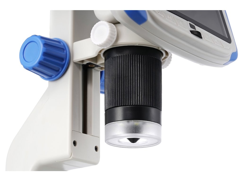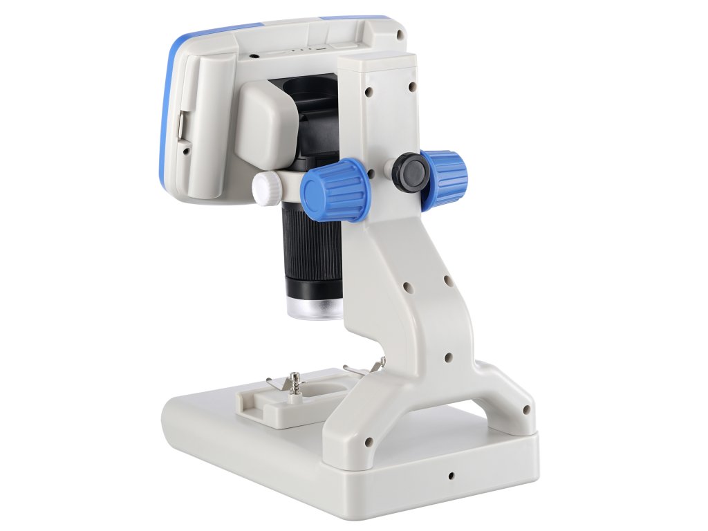 Mikroskop je vybaven otočnou 5" barevnou LCD obrazovkou. Lze ji mírně naklonit pro pohodlnější práci. Mikroskop nabízí zvětšení v rozsahu 7x až 200x, z toho optické zvětšení 7x až 50x. Stolek mikroskopu je opatřen svorkami na sklíčka. LED osvětlení se nachází po obou stranách stolku, aby bylo možné pracovat nejen s neprůhlednými, ale i s částečně průhlednými a zcela průhlednými vzorky. Jas osvětlení lze regulovat.