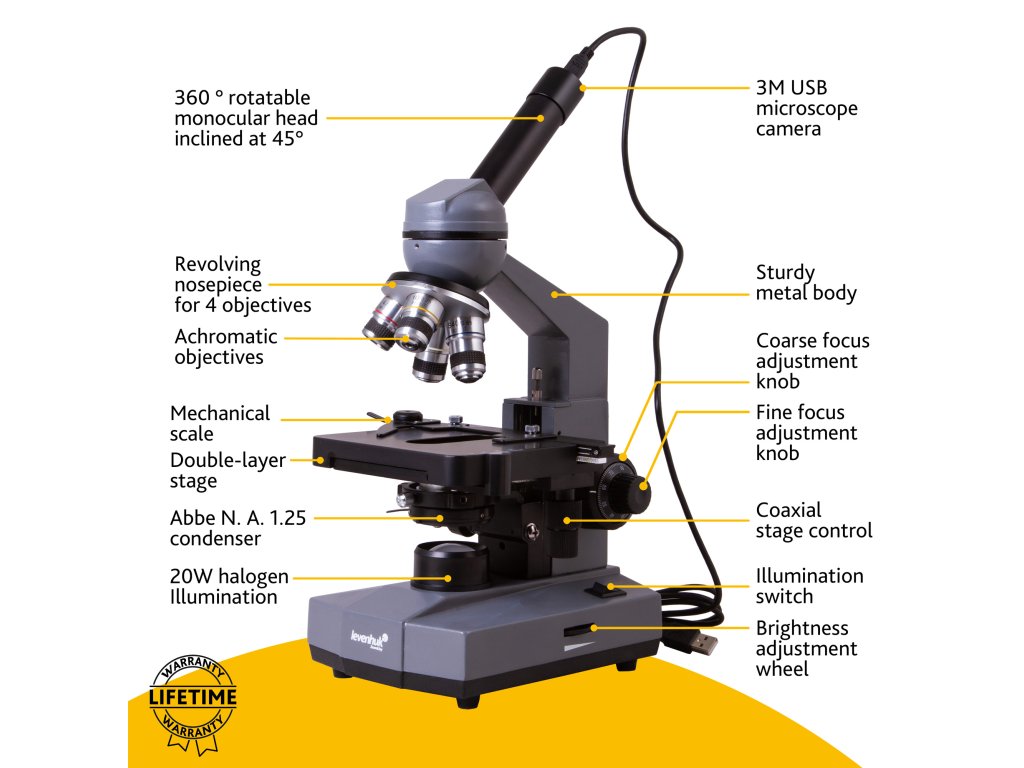 Digitální monokulární mikroskop Levenhuk D320L BASE 3M