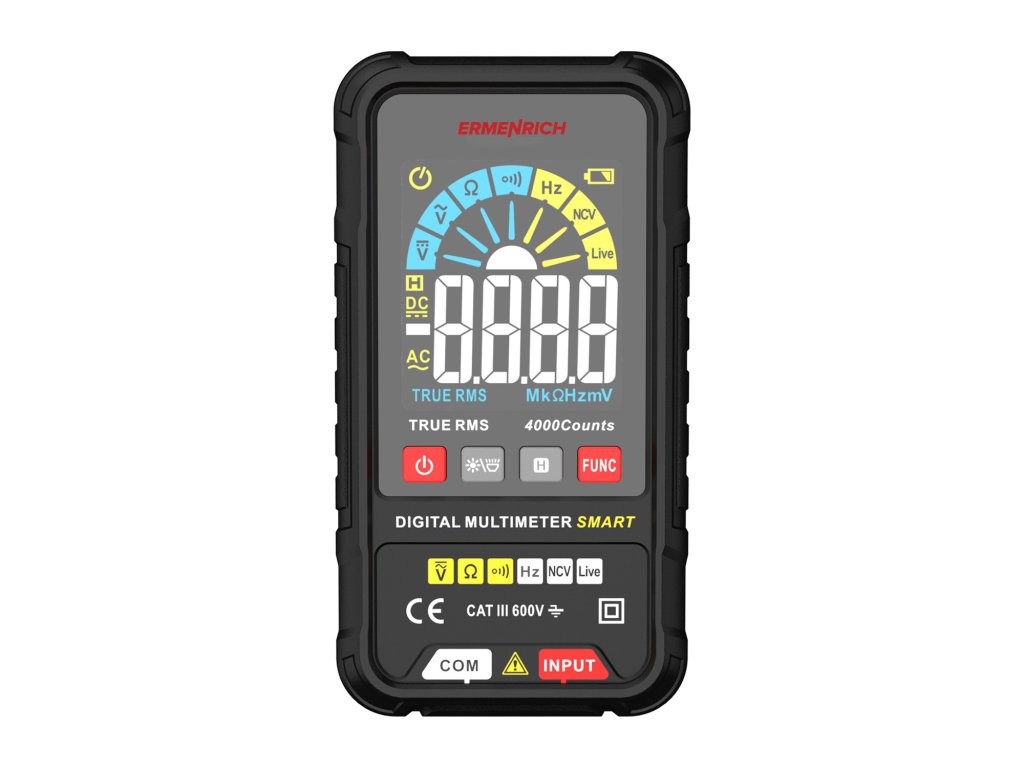 Digitální multimetr Ermenrich Zing TC14 s funkcí Smart je přenosný elektrický měřicí a testovací přístroj pro profesionální i domácí použití. Po aktivaci automaticky detekuje příchozí signál a provádí měření. Funkce Smart funguje ve všech režimech měření kromě měřiče frekvence. V případě potřeby můžete přístroj ovládat ručně stisknutím tlačítka. Přístroj automaticky nastaví mezní hodnotu měření v libovolném provozním režimu. Všechna měření jsou založena na skutečné efektivní hodnotě.