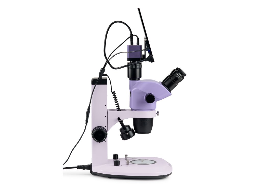 Stereomikroskop s Greenoughovou optickou konstrukcí poskytuje přesné detaily topografie povrchu bez ztráty prostorové orientace, čímž zajišťuje velkou hloubku ostrosti při pozorování trojrozměrných objektů. Mikroskop plynule mění zvětšení s faktorem 6,7 v rozsahu od 6,7x do 45x při zachování pracovní vzdálenosti 105 mm. Obsahuje vestavěnou osvětlovací soustavu pro pozorování v procházejícím a odraženém světle pro studium průhledných a neprůhledných objektů. Mikroskop umožňuje instalaci příslušenství pro polarizované světlo a temné pole. Mikroskop je vybaven nízkorozpočtovým 2 Mpx fotoaparátem a rozhraním HDMI. Obraz se přenáší přímo na obrazovku monitoru bez připojení k počítači. Snímač 1/2,8" s adaptérem 0,5x zobrazuje na monitoru při nejmenším zvětšení mikroskopu zorné pole 16,6x9,3 mm. Monitor digitálního mikroskopu má rozlišení Full HD. Mikroskop se používá při restaurování, montáži a kontrole kvality a také v zoologii a botanice.
