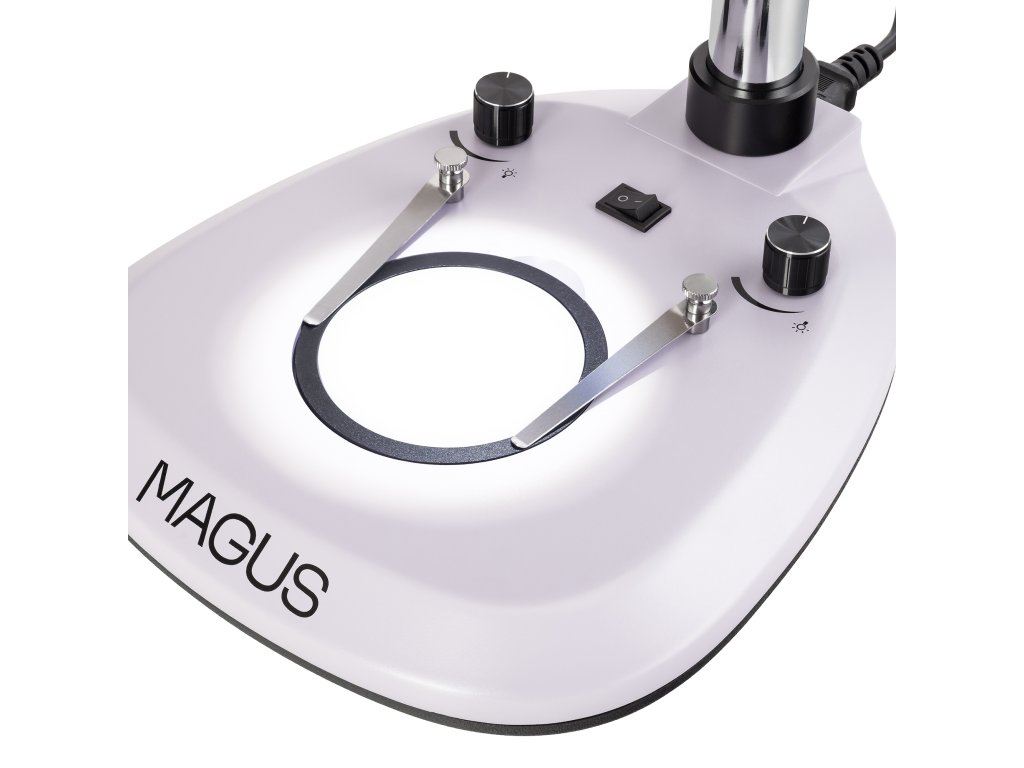 - Základna s vestavěným zdrojem procházejícího světla, vestavěným napájecím zdrojem a stojanem se zaostřovacím mechanismem
