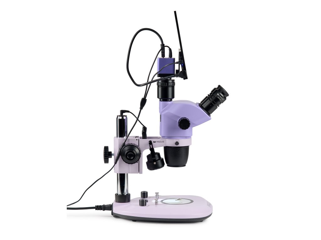 Stereomikroskop s Greenoughovou optickou konstrukcí poskytuje přesné detaily topografie povrchu bez ztráty prostorové orientace, čímž zajišťuje velkou hloubku ostrosti při pozorování trojrozměrných objektů. Mikroskop plynule mění zvětšení s faktorem 8,4 v rozsahu od 6,5x do 55x při zachování pracovní vzdálenosti 105 mm. Obsahuje vestavěnou osvětlovací soustavu pro pozorování v procházejícím a odraženém světle pro studium průhledných a neprůhledných objektů. Mikroskop umožňuje instalaci příslušenství pro polarizované světlo a temné pole. Mikroskop je vybaven nízkorozpočtovým 2 Mpx fotoaparátem a rozhraním HDMI. Obraz se přenáší přímo na obrazovku monitoru bez připojení k počítači. Snímač 1/2,8" s adaptérem 0,5x zobrazuje na monitoru při nejmenším zvětšení mikroskopu zorné pole 17,1x9,6 mm. Monitor digitálního mikroskopu má rozlišení Full HD. Mikroskop se používá při restaurování, montáži a kontrole kvality a také v zoologii a botanice.
